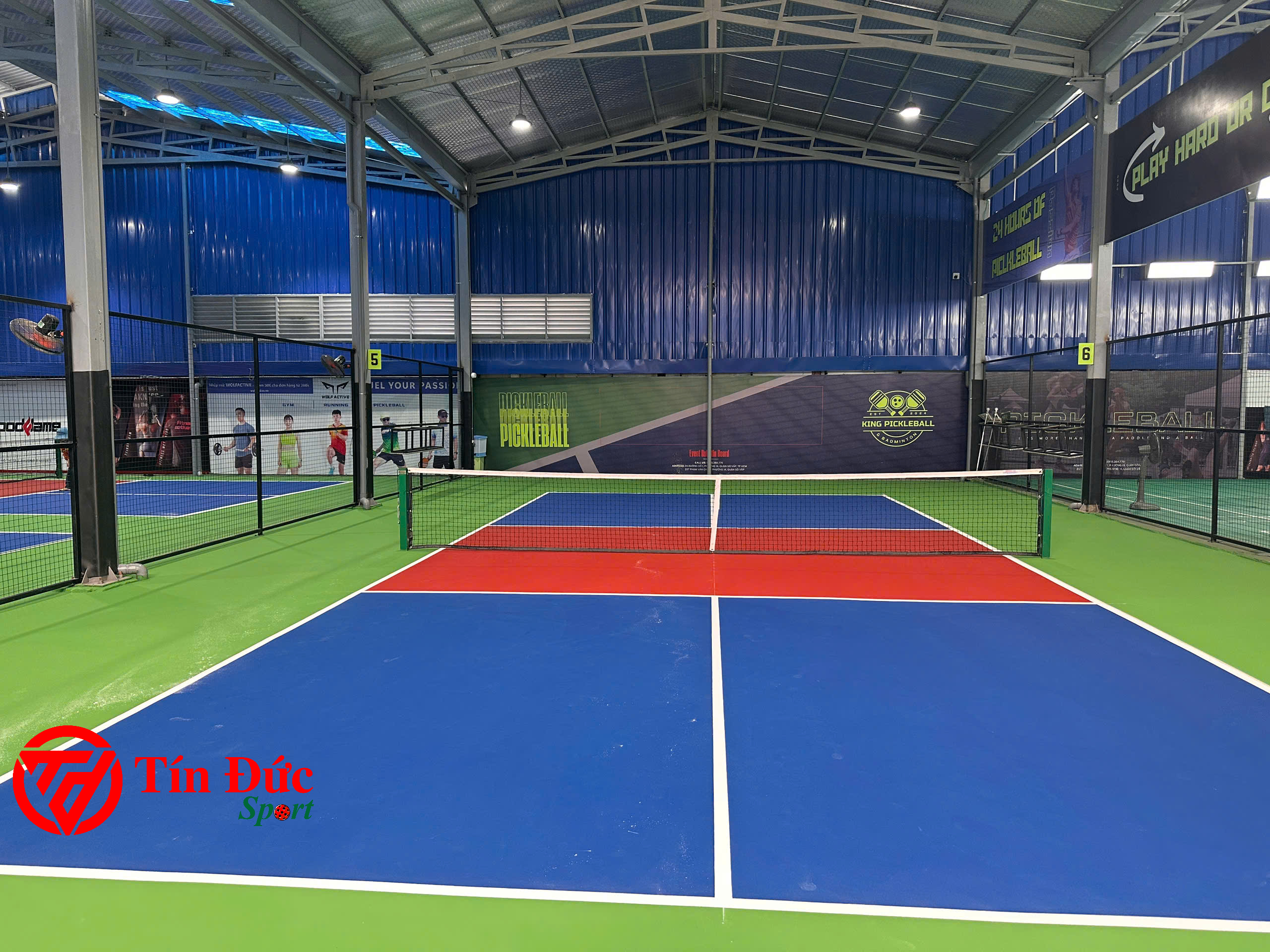 Tín Đức Sport hoàn thiện cụm 5 sân tại dự án King Pickleball cơ sở 1, 2 tại Quận Gò Vấp, TPHCM. Cụm công trình sử dụng sơn mặt sân chất lượng cao đem lại cảm giác bóng tốt, trải nghiệm chơi tối ưu.