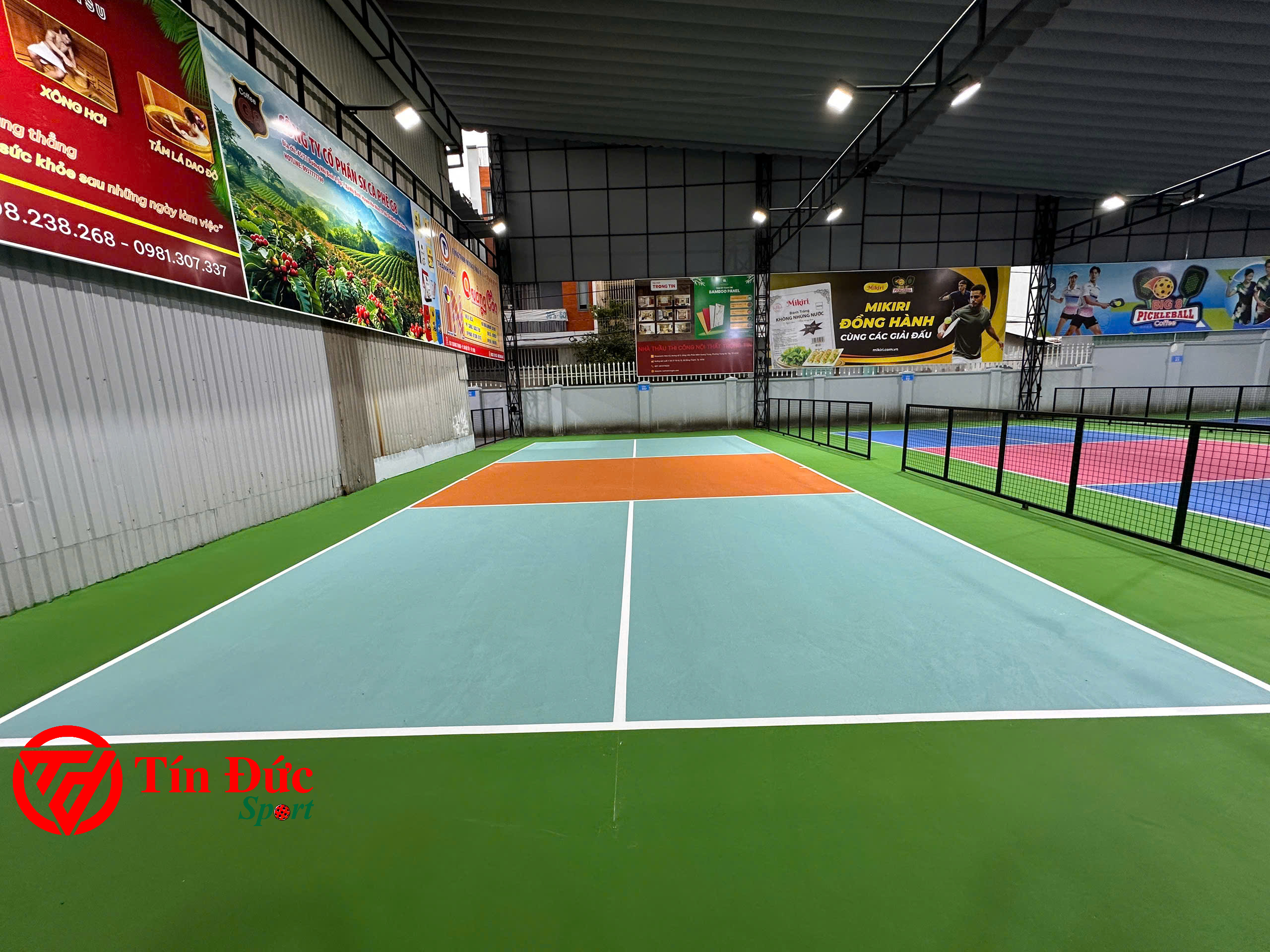 Qúy III/2025 Tín Đức Sport hoàn thiện và bàn giao cụm 8 sân pickleball kết hợp cà phê Big 8. Cụm 8 sân trong nhà được thi công nền cứng asphalt kết hợp sơn phủ cao cấp đem lại trải nghiệm chơi cực kỳ tốt. Khu vực cà phê được bố trí ngay bên cạnh phục vụ nhu cầu sử dụng đồ uống, thư giãn, và giao lưu. Đây là sự kết hợp hoàn hảo giữa hoạt động thể chất cường độ cao và thư giãn tinh thần, mang đến một địa điểm lý tưởng cho cộng đồng yêu pickleball và những người tìm kiếm một điểm đến giải trí mới lạ, chất lượng.